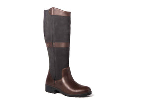 The Dubarry Sligo Country Boot in Black/Brown is a premium women's knee-high boot that seamlessly combines traditional country styling with modern performance technology. Crafted from Dubarry’s signature DryFast-DrySoft™ leather, this boot is designed to withstand the elements while providing exceptional comfort and durability. Its elegant silhouette and versatile colour make it suitable for both countryside adventures and urban outings.